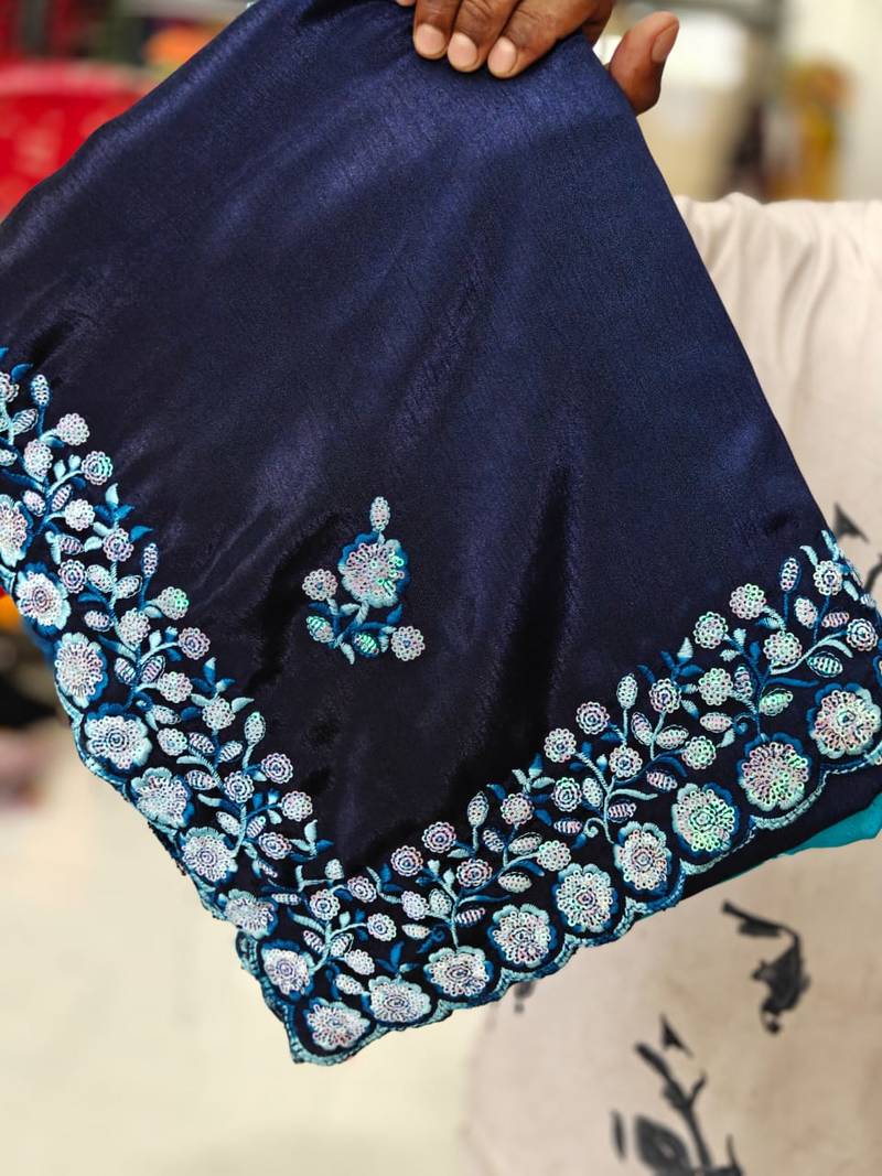 | Product Name | Elegant Blue Chiffon Saree With Heavy Designer Sequins & Thread Work And Silk Blend Blend Blouse | |