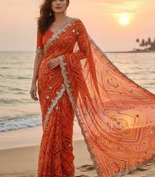 Elegant orange georgette bandhani saree with designer jari cutwork border & banglori silk blend blouse