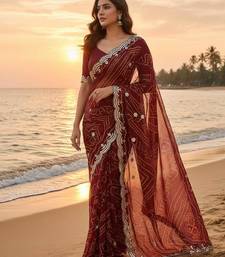 Elegant red georgette bandhani saree with designer jari cutwork border & banglori silk blend blouse