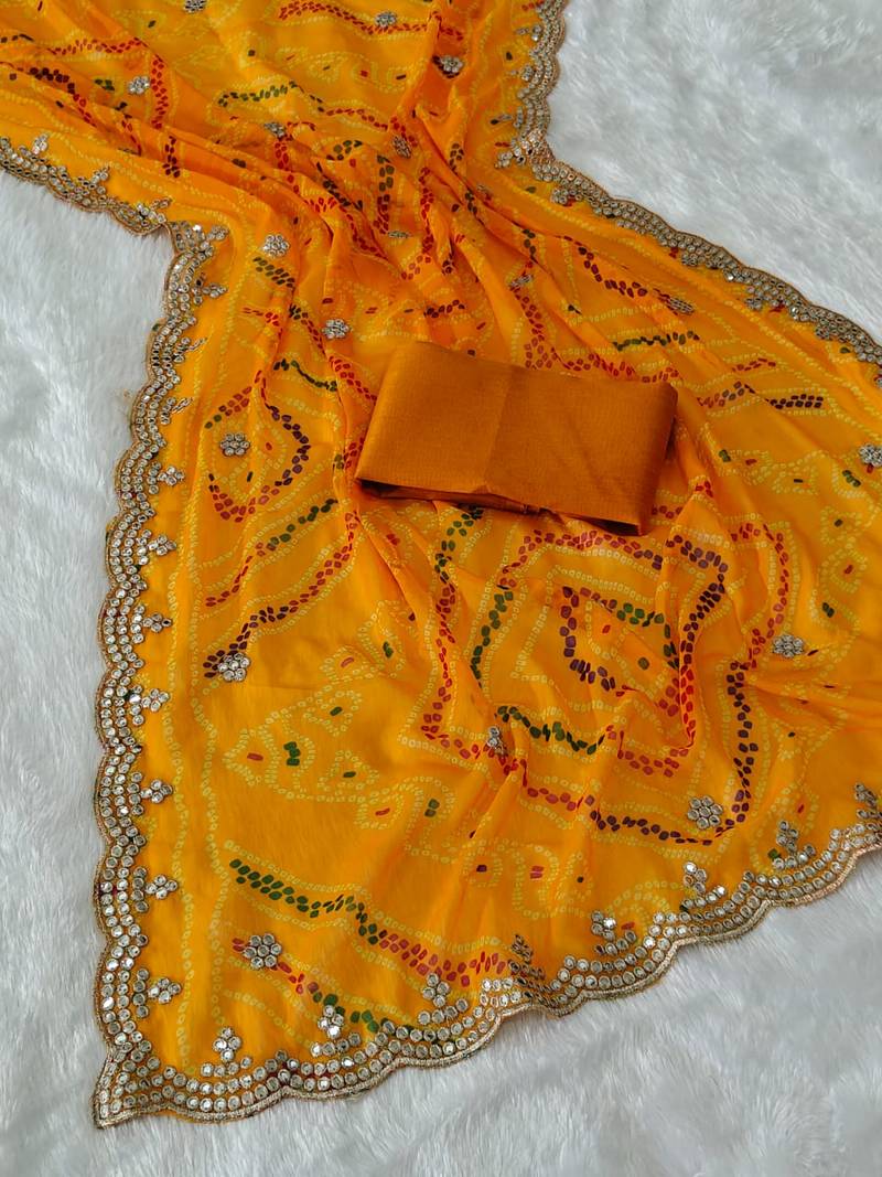 | Product Name | Elegant Yellow Georgette Bandhani Saree With Designer Jari Cutwork Border & Banglori Silk Blend Blouse | |