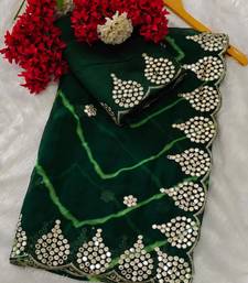 Green color designer georgette saree with zari cutwork border & bangalore blouse with work
