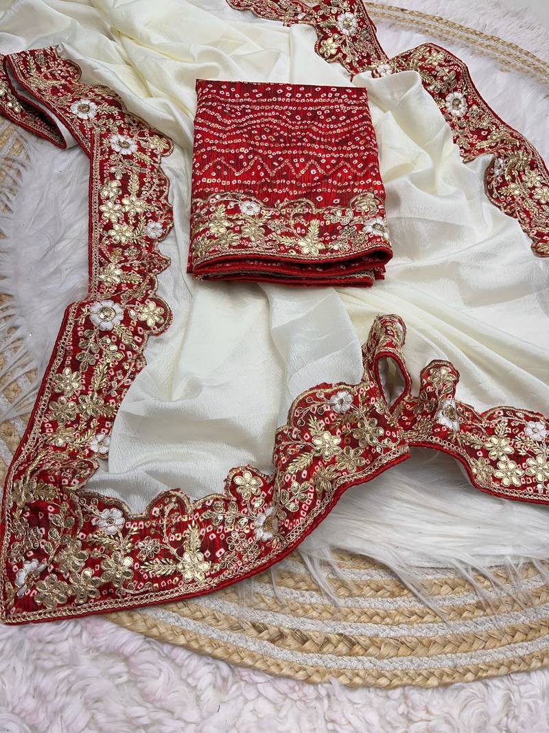 | Product Name | White Color Soft Chiffon Saree With Maslin Cutwork, Coding Sequins & Multi Work Contrast Lace And Heavy Blouse | |