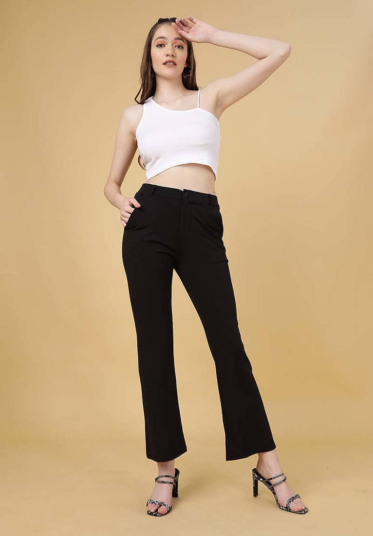 | Product Name | Women Solid Black Regular Fit Mid Rise Flat Front Trousers | |