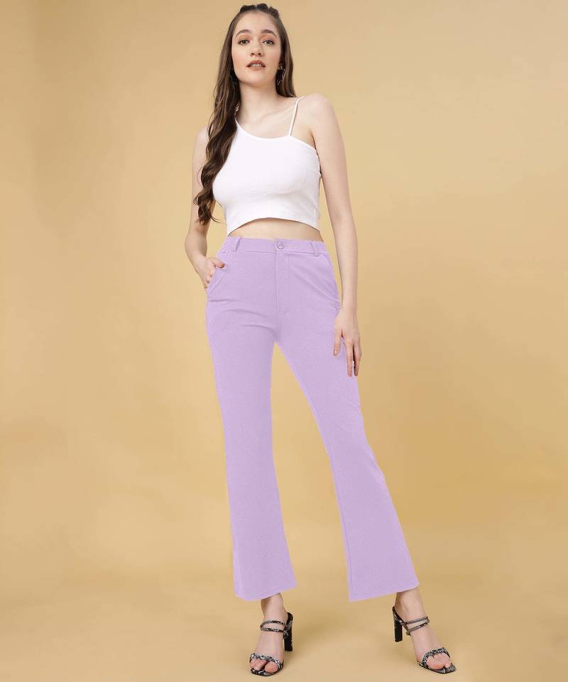| Product Name | Women Solid Lavender Regular Fit Mid Rise Flat Front Trousers | |
