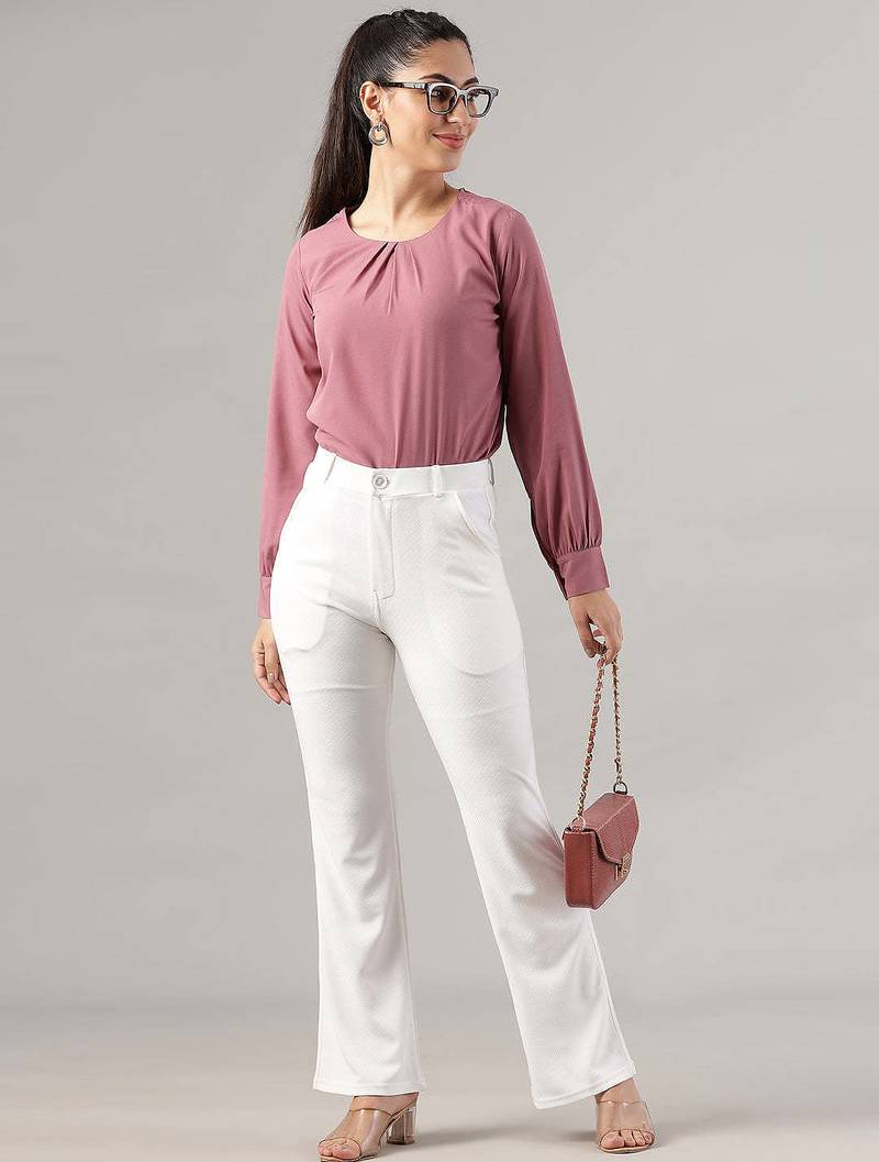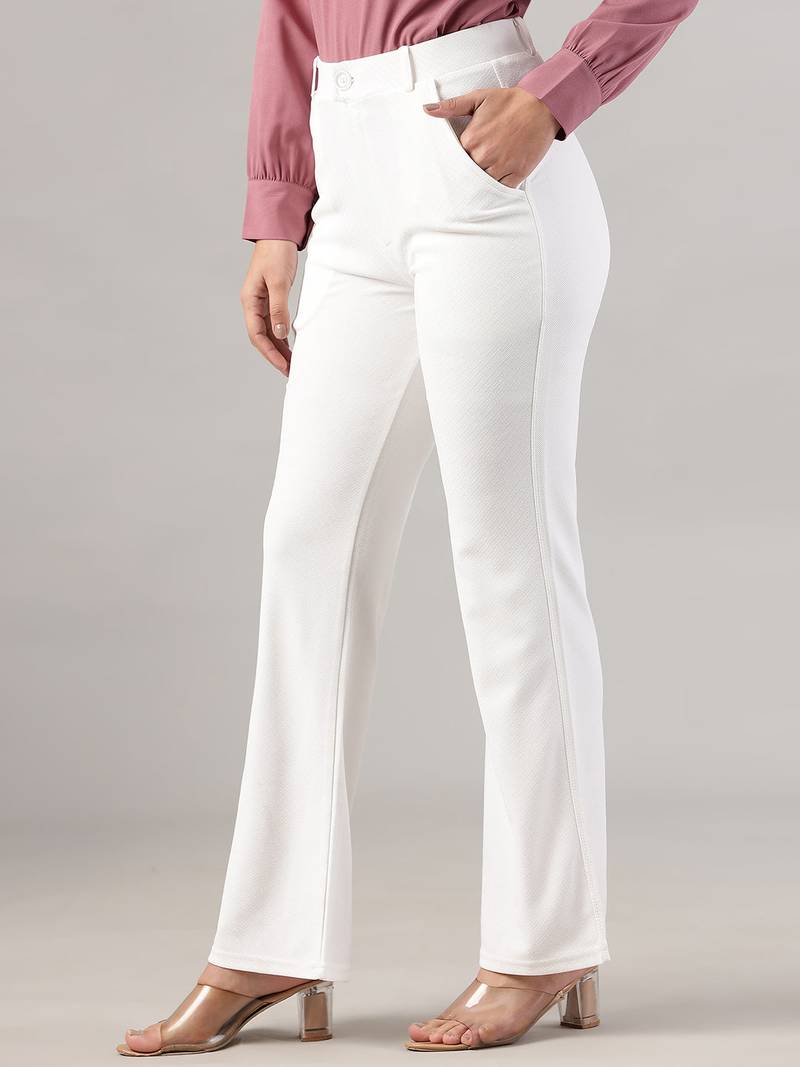 | Product Name | Women Solid White Regular Fit Mid Rise Flat Front Trousers | |
