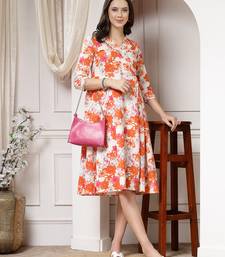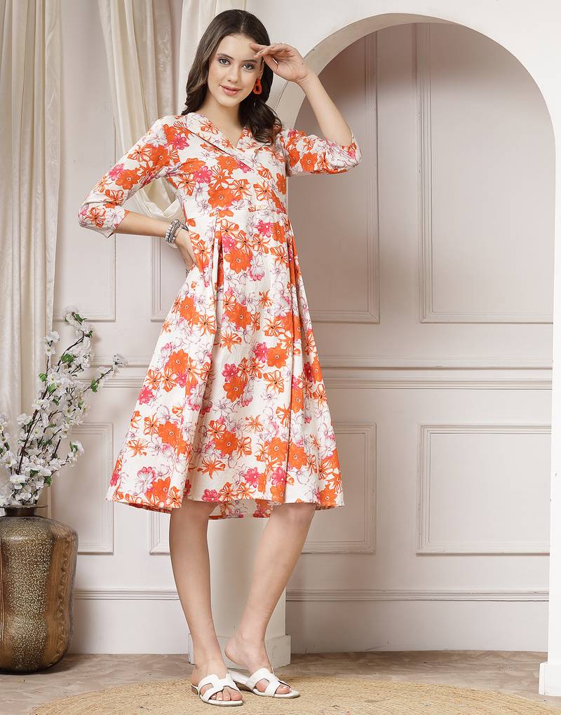 | Product Name | Women Cotton Orange Floral Print A Line Midi Dress | |