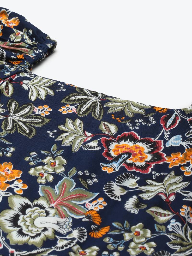Product Name Women Rayon Blue Floral Print Flared Dress