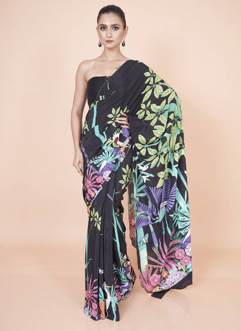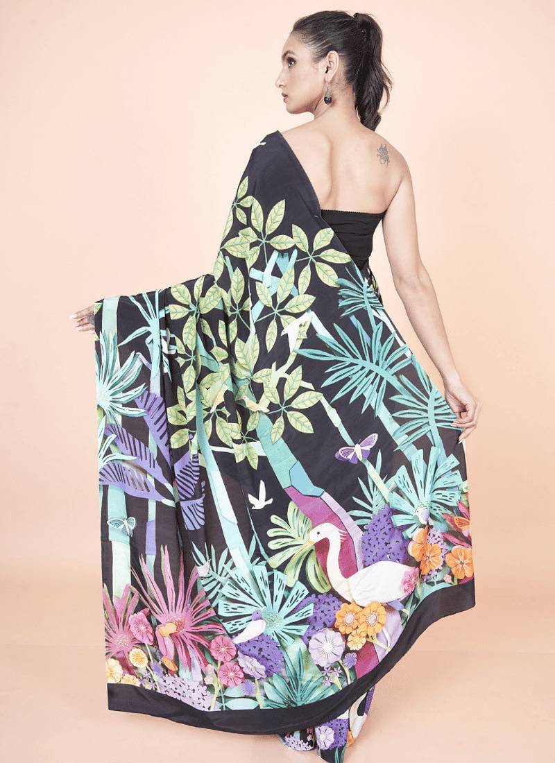 | Product Name | Multi Coloured Botanical Styled Digital Printed Crepe Saree With Blouse | |