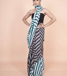 Multi coloured geomatric styled digital printed crepe saree with blouse