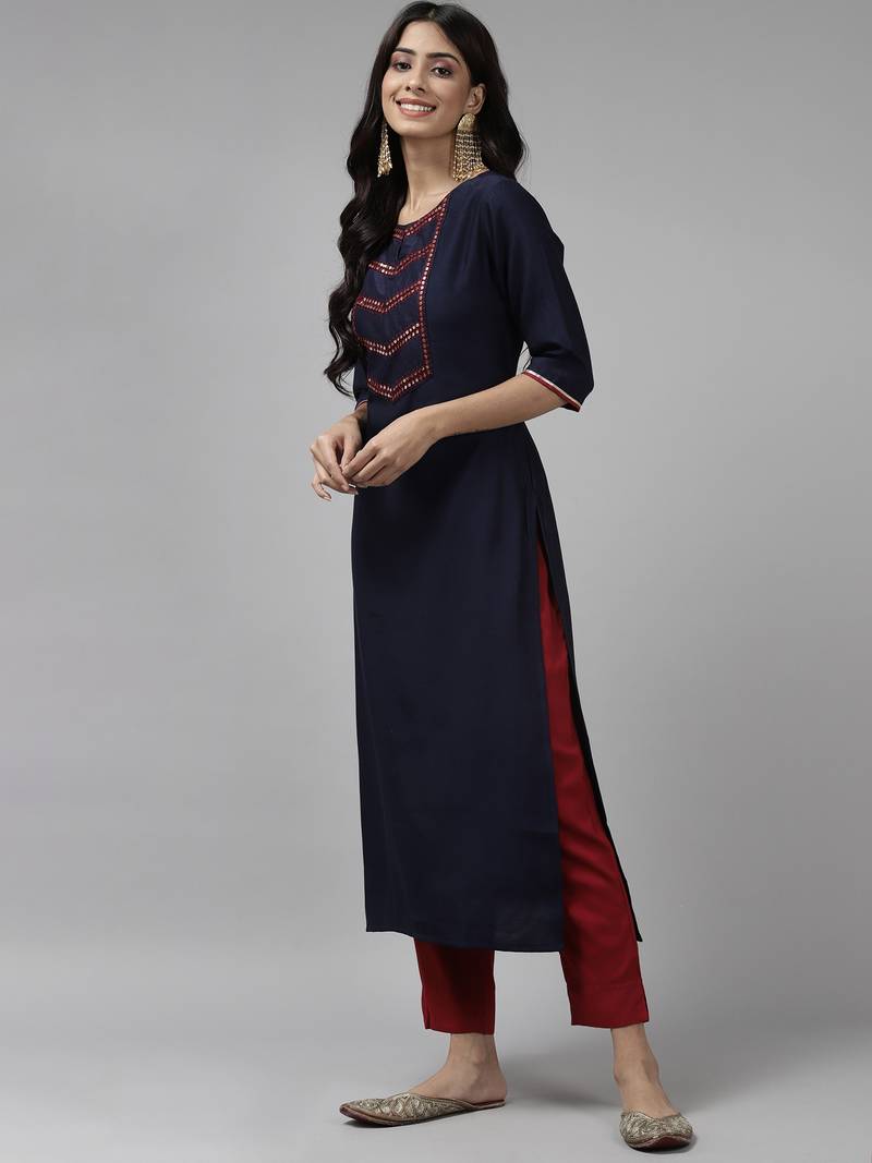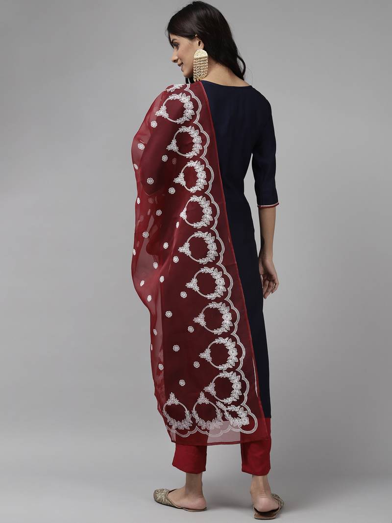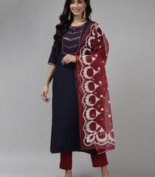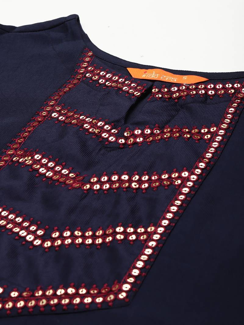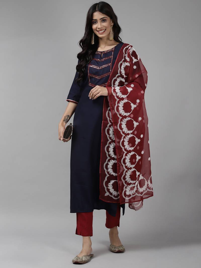 | Product Description | Indo Era Blue Embroidered Straight Kurta Palazzo With Dupatta Set |