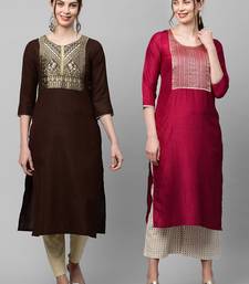 | Product Description | Indo Era Yoke Design Polyester Brown & Maroon Straight Pack Of 2 Kurtas |
