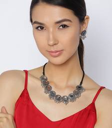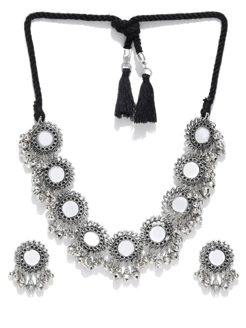 | Product Name | Infuzze Oxidised Silver Toned & Black Mirror Work Jewellery Set | |