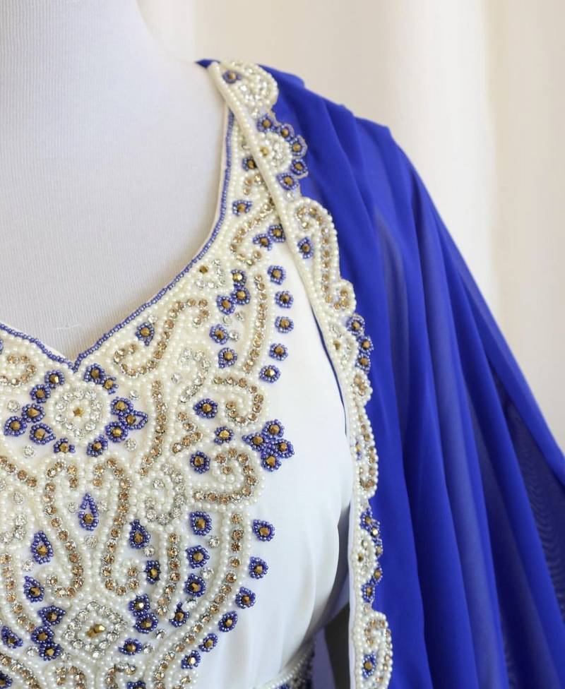 Royal blue & white handcrafted zari work stitched dress georgette kaftan dress