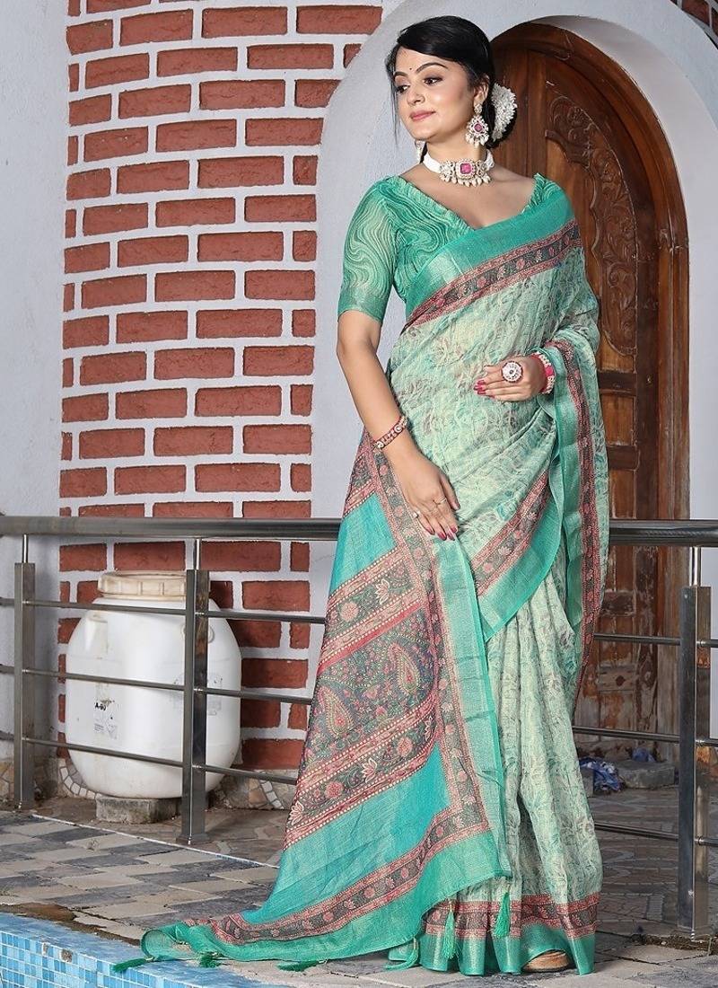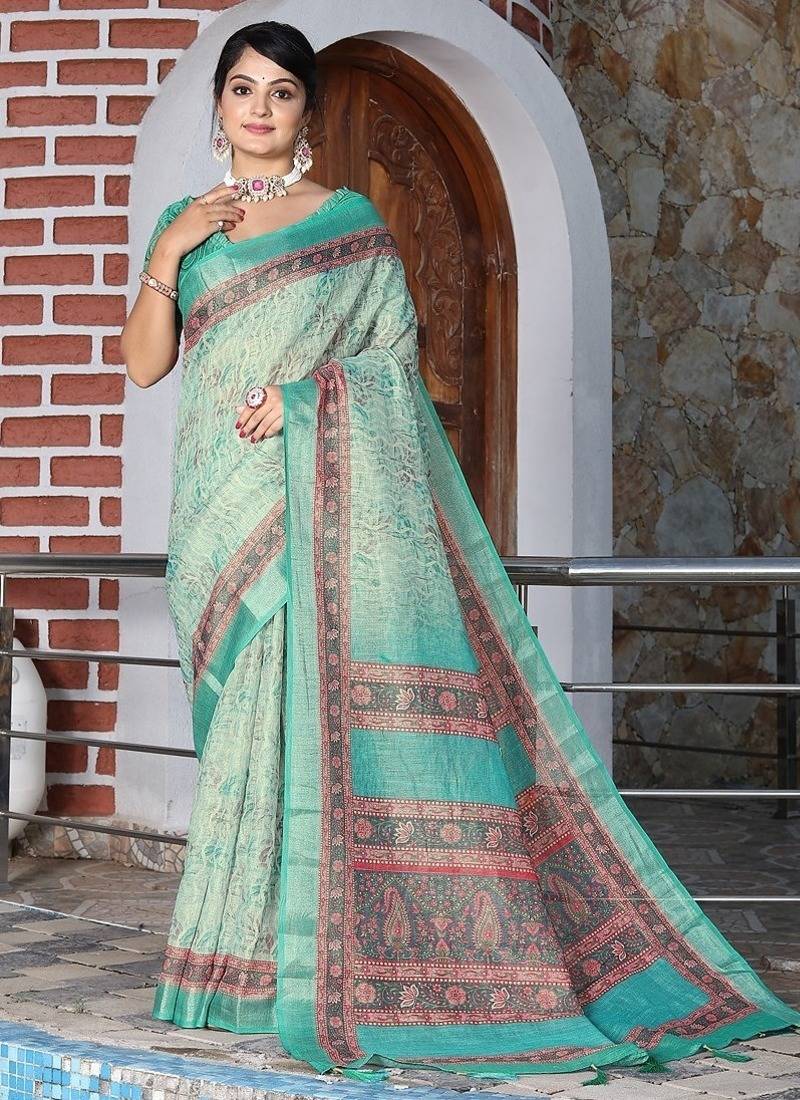 | Product Name | Green Pure Cotton Printed Printed Saree With Blouses | |