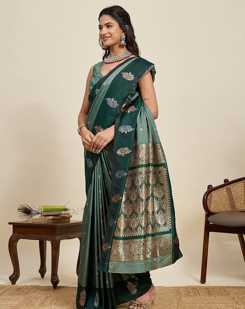 | • | Saree | : | Color- Green / Fabric- Art Silk |
