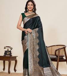 Green art silk woven kanjivaram silk saree with blouses