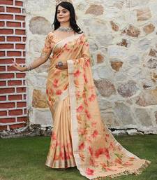 Orange pure cotton printed printed saree with blouses