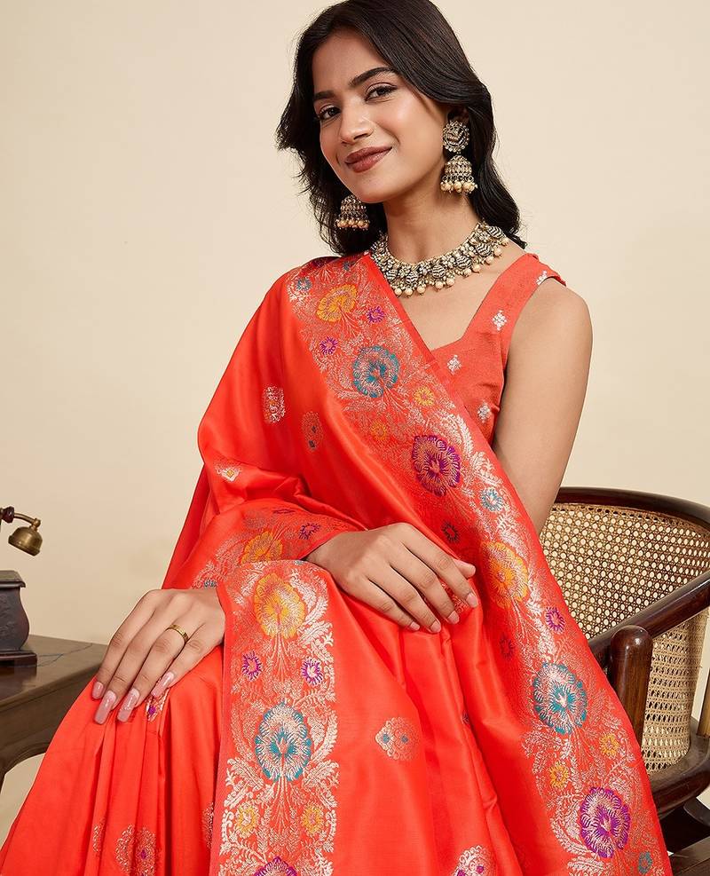 | Product Name | Orange Art Silk Woven Kanjivaram Silk Saree With Blouses | |