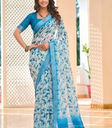 Blue printed pure cotton blue saree with blouse