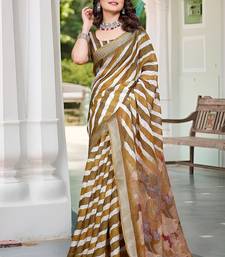 Brown printed pure cotton brown saree with blouse