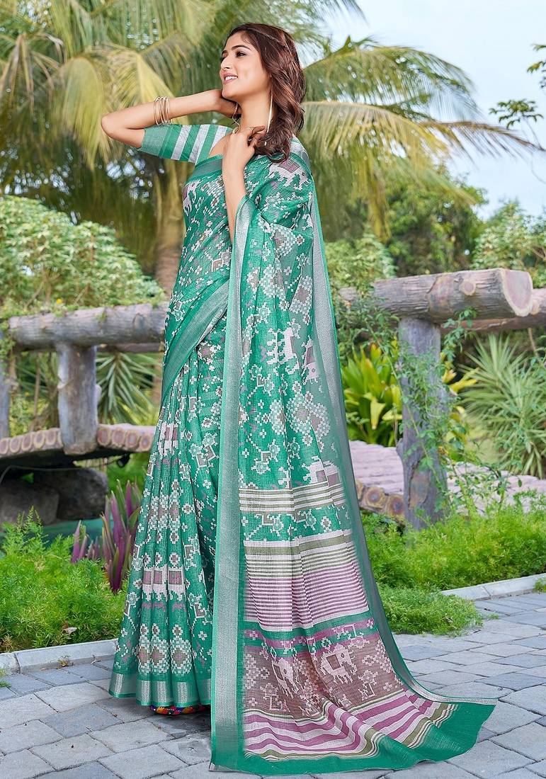 | Product Name | Green Printed Pure Cotton Green Saree With Blouse | |