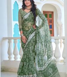 LightGreen printed pure cotton light green saree with blouse