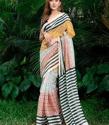 Multicolor printed pure cotton multicolor saree with blouse