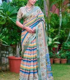 Multicolor printed pure cotton multicolor saree with blouse