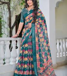 Multicolor printed pure cotton multicolor saree with blouse