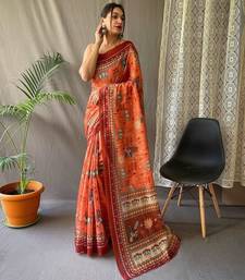 | Product Name | Orange Printed Pure Cotton Orange Saree With Blouse | |
