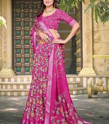 Pink printed pure cotton pink saree with blouse