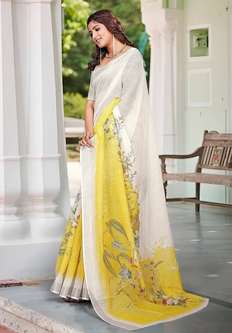 | Product Name | White Printed Pure Cotton White Saree With Blouse | |