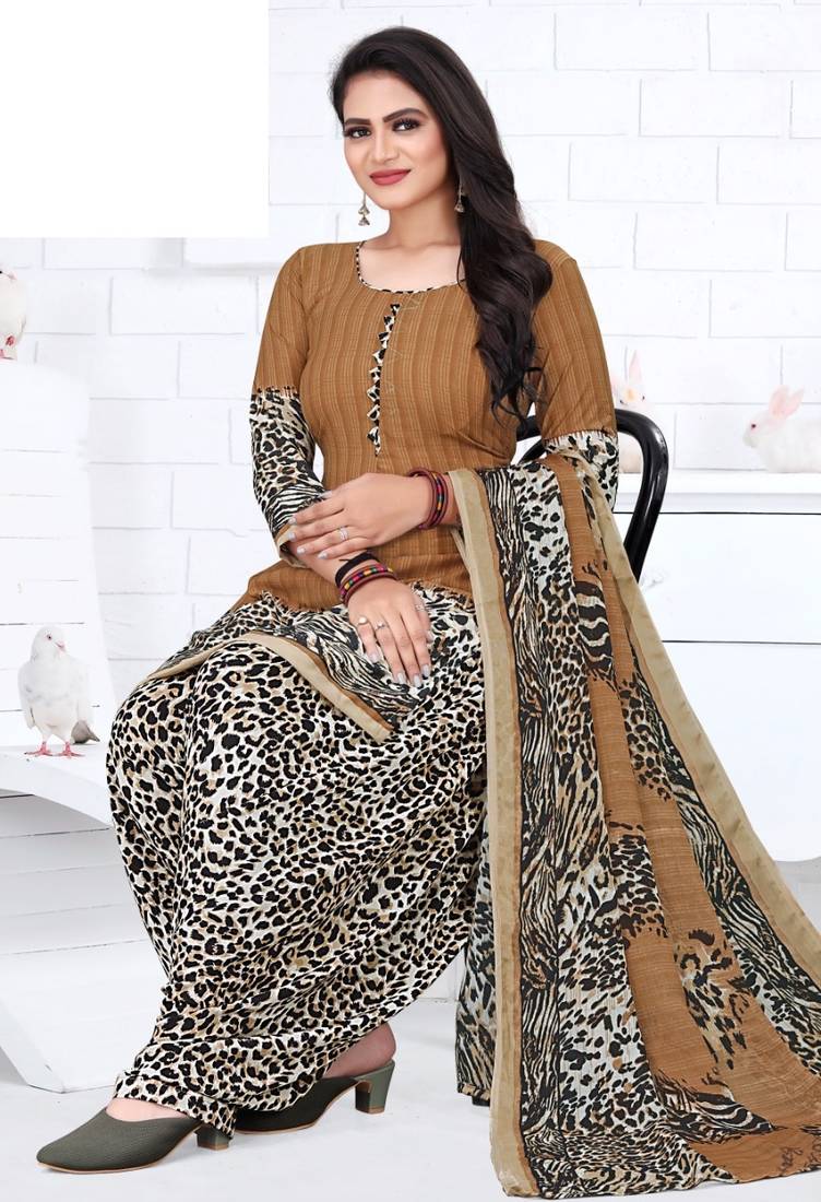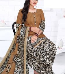 Brown printed crepe salwar unstitched