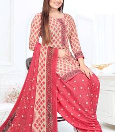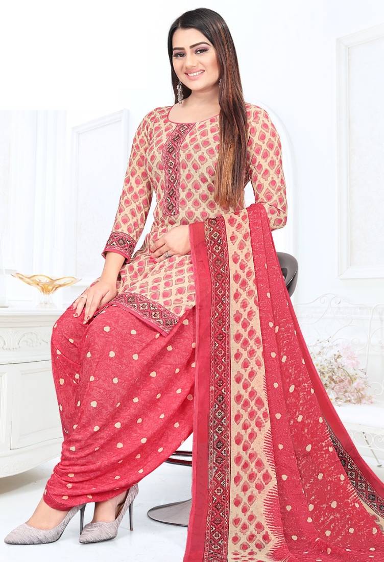 Pink printed crepe salwar unstitched