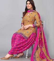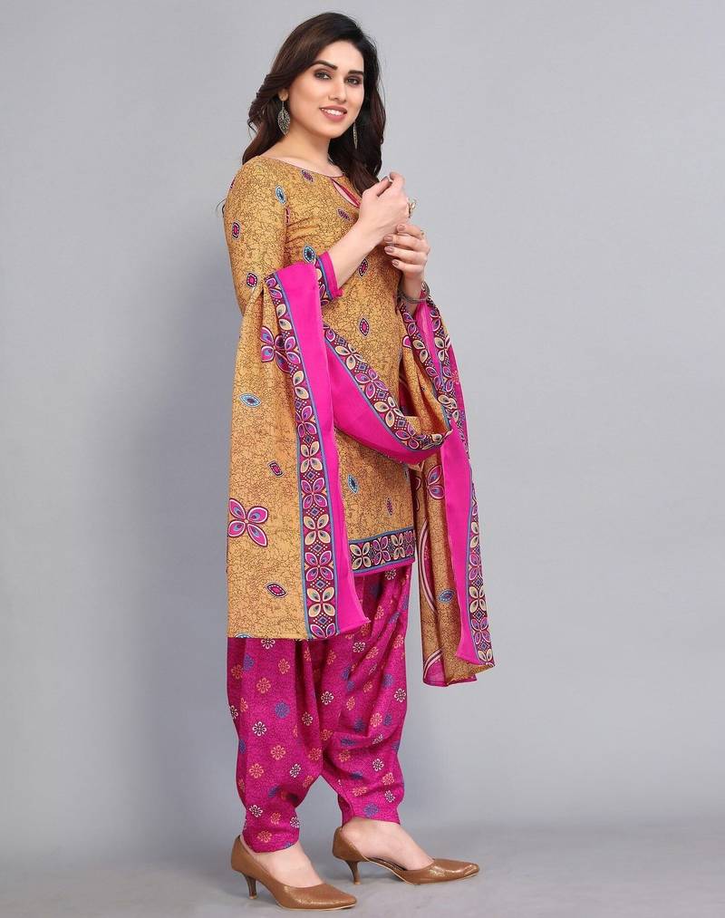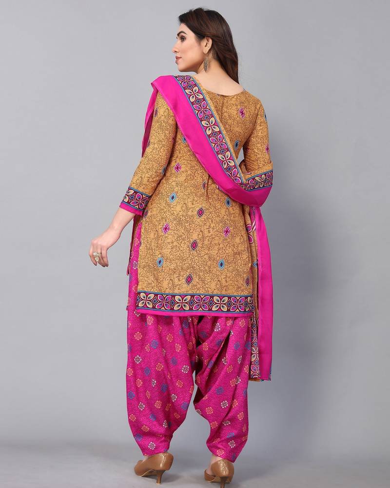 Unstitched printed cotton blend kurta & patiyala dress material with top, bottom & dupatta