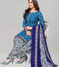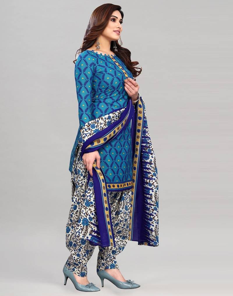 Unstitched printed cotton blend kurta & patiyala dress material with top, bottom & dupatta