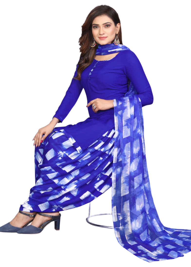 Unstitched printed crepe kurta & patiyala dress material with top, bottom & dupatta