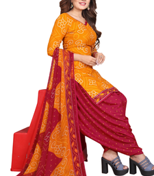 Unstitched printed crepe kurta & patiyala dress material with top, bottom & dupatta