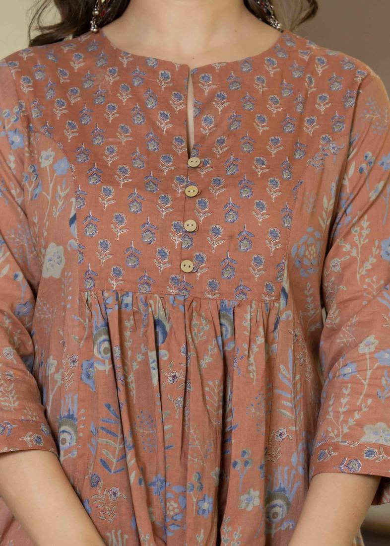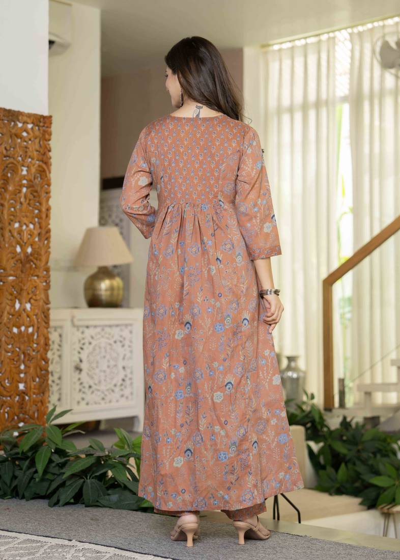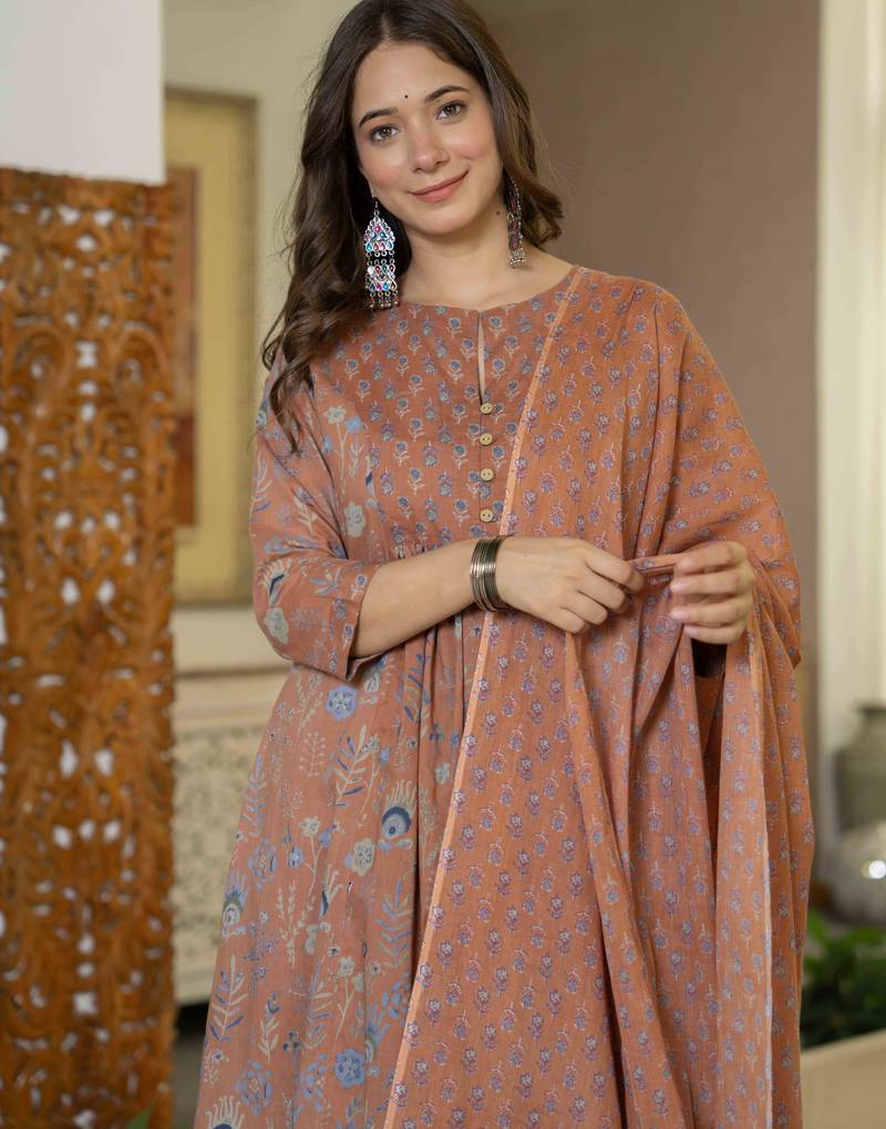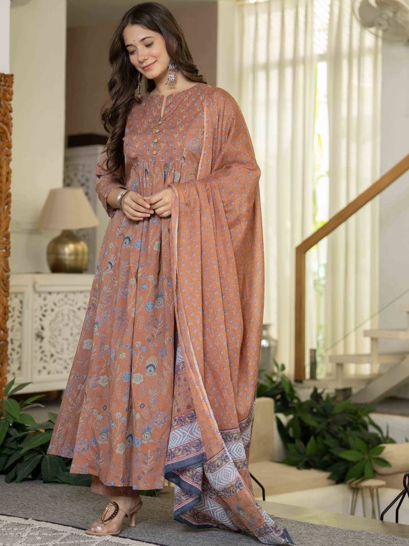 | Product Name | Women Cotton Printed Round Nack 3/4 Sleeves Calf Length Flared Kurta Pant And Dupatta Set | |