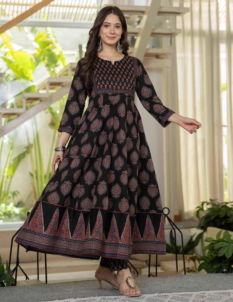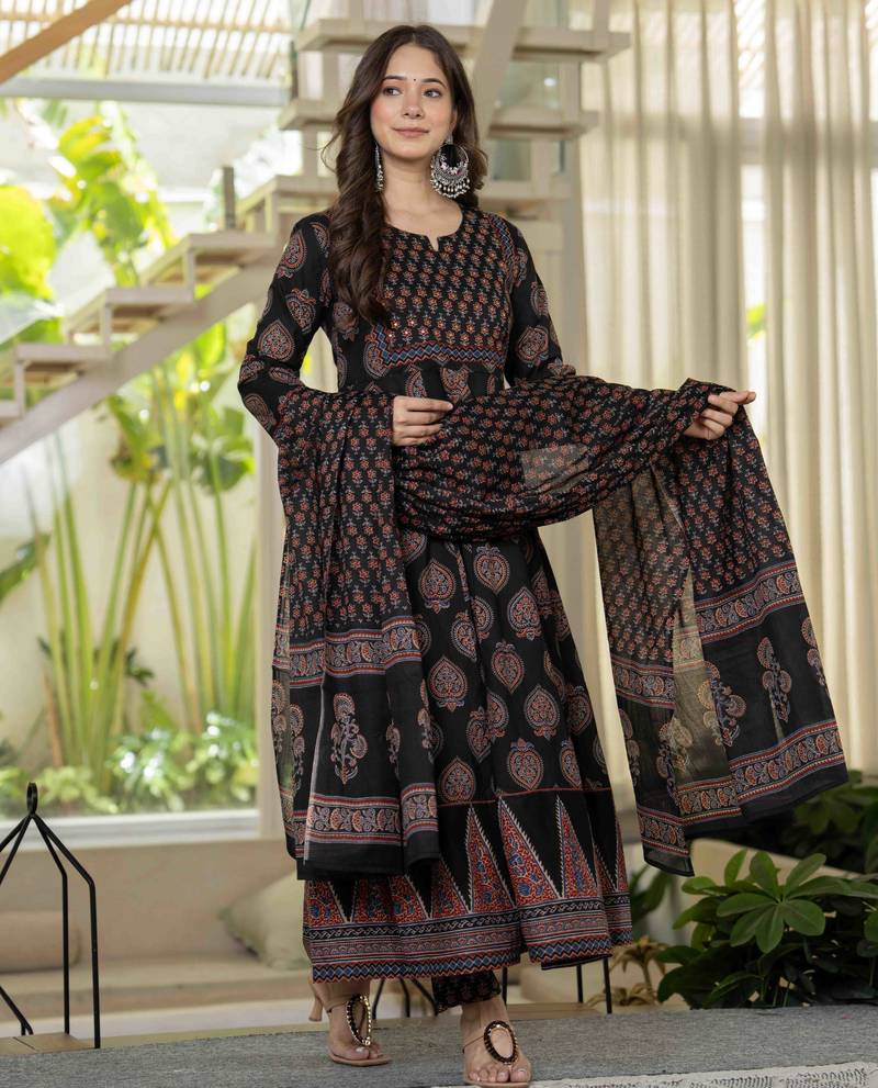 | Product Name | Women Cotton Printed Round Nack 3/4 Sleeves Calf Length Flared Kurta Pant And Dupatta Set | |