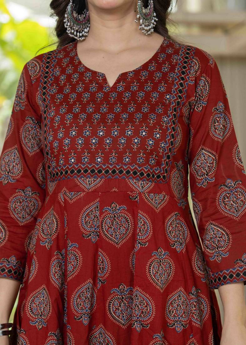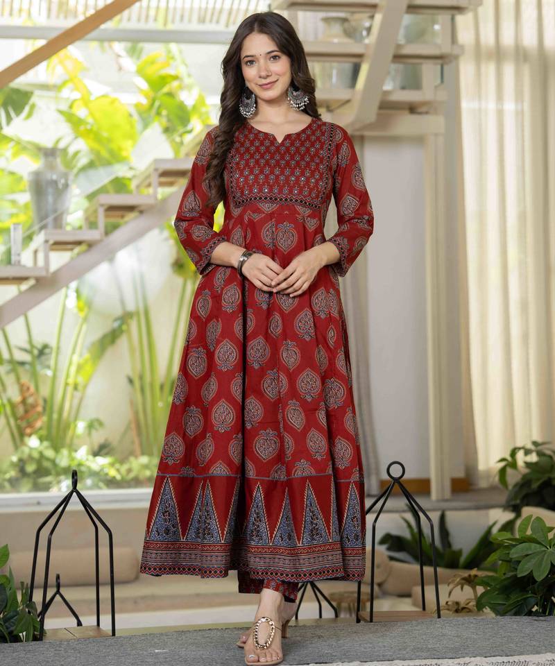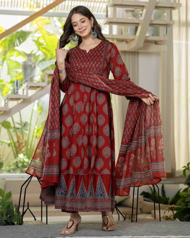 | Product Name | Women Cotton Printed Round Nack 3/4 Sleeves Calf Length Flared Kurta Pant And Dupatta Set | |