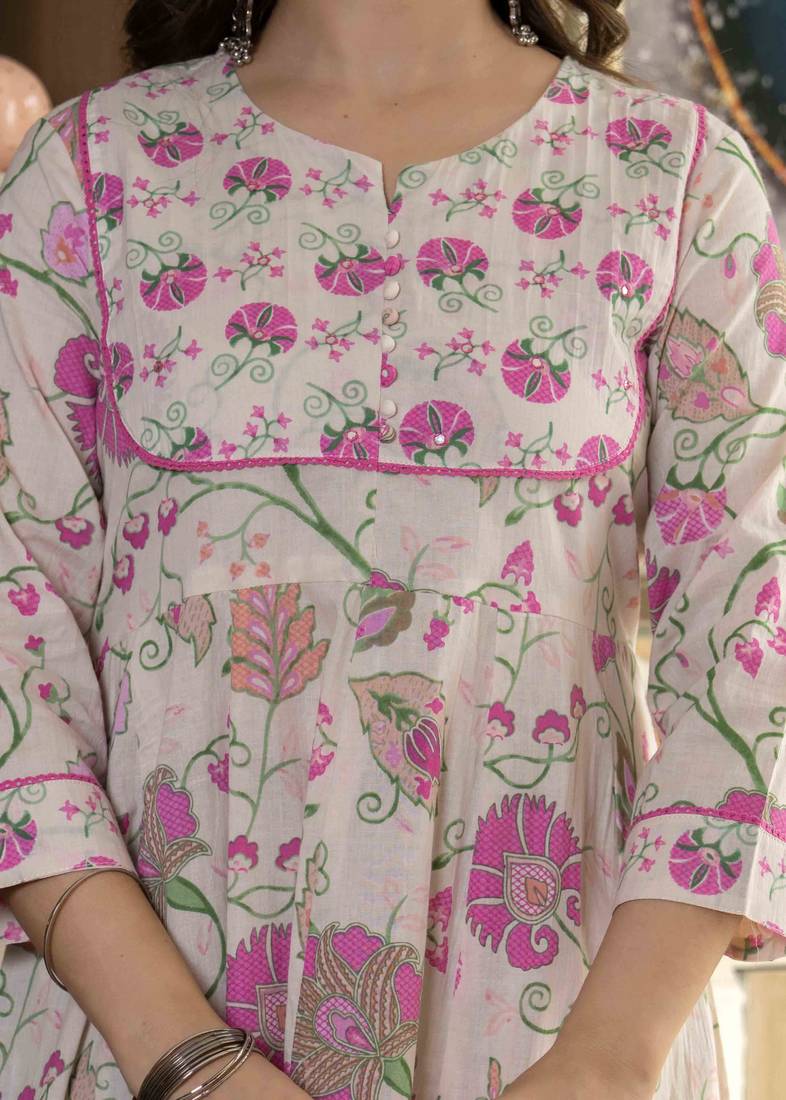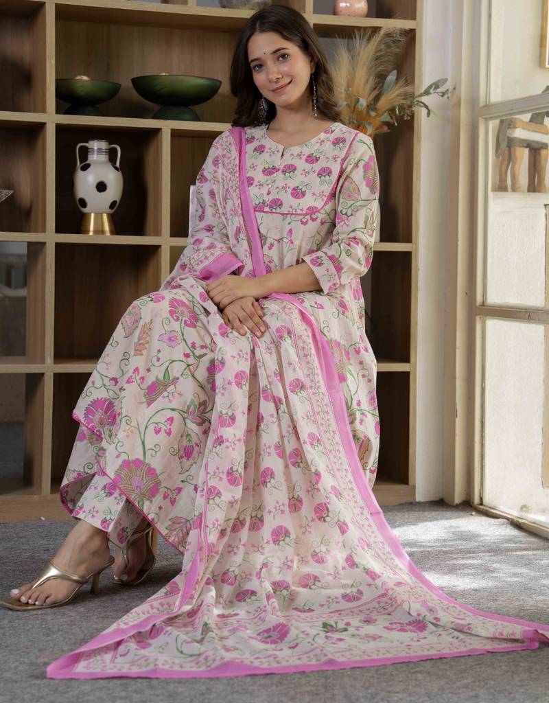 | Product Name | Women Cotton Printed Round Nack 3/4 Sleeves Calf Length Flared Kurta Pant And Dupatta Set | |