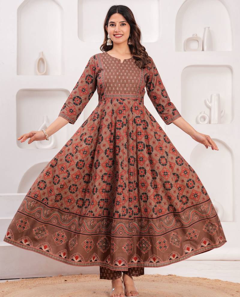 | Product Name | Women Cotton Printed Round Nack Calf Length Flared Kurta Pant And Dupatta Set | |