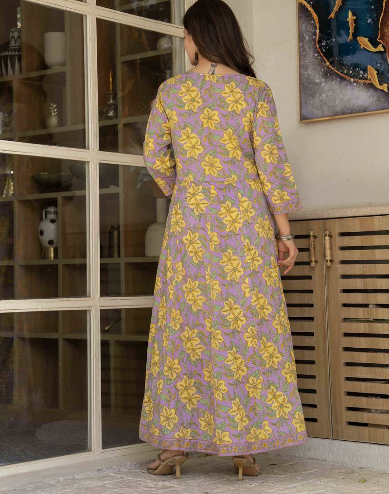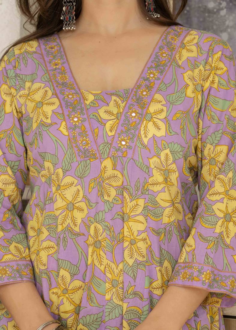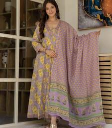 | Product Name | Women Cotton Printed V Nack 3/4 Sleeves Calf Length Flared Kurta Pant And Dupatta Set | |