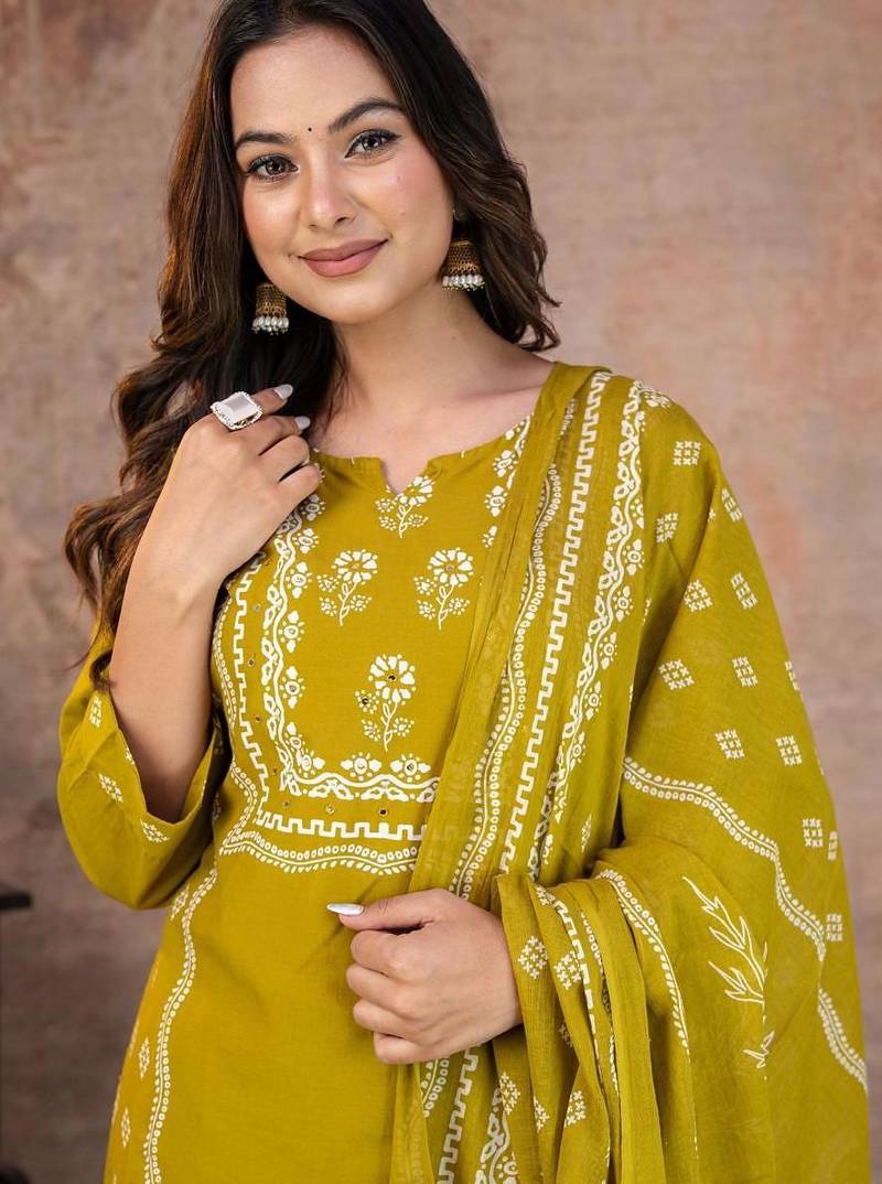 | Product Name | Beautiful Jaipuri A Yellow Colored Women's Ethnic Wear Kurta Set With A Geometric Print | |