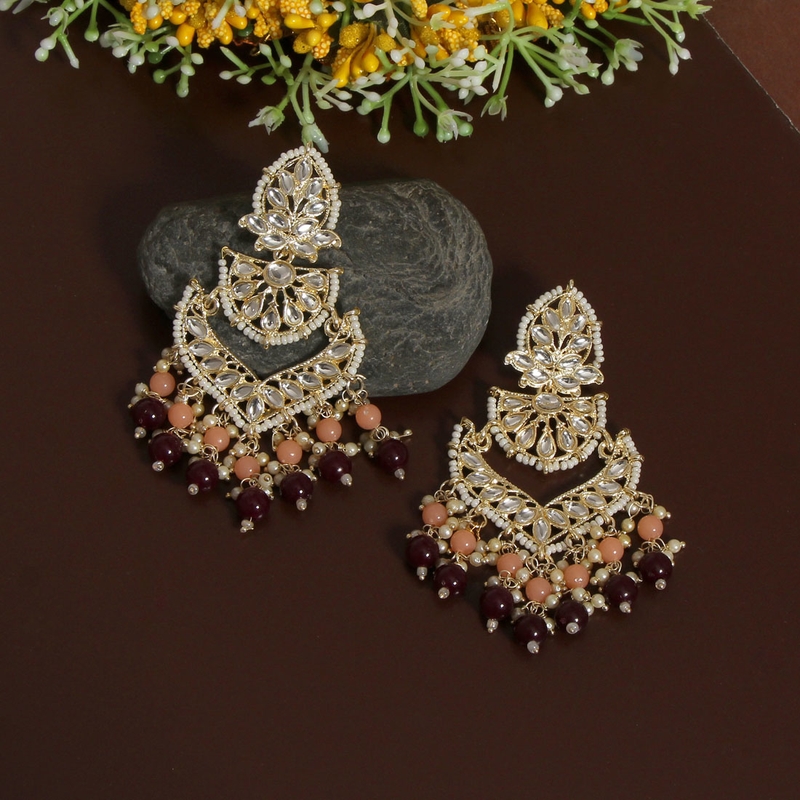 | Product Description | Earring Length: 9.00 Cm X Width: 5.00 Cm | Metal: Alloy With Good Quality Gold Plated | Color: Maroon | Stone: Kundan & Imitation Pearl | Gross Weight: 37.00 Grams | Package Content: 1 Pair Of Earrings | Back Finding: Post With Friction Back X Earring Style: Dangle |