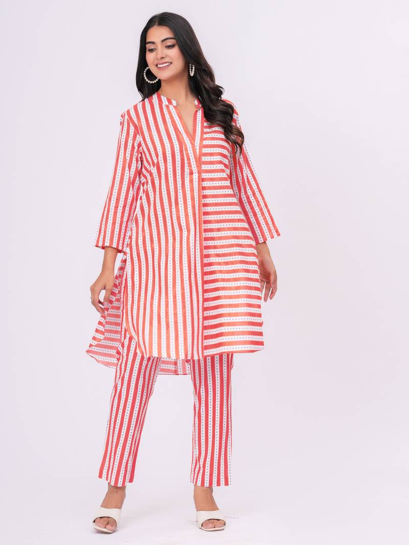 Product Name Orange/White Stripe Cotton Co Ord Set