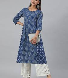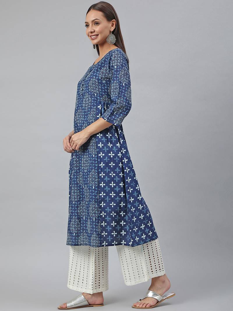 Blue printed cotton kurtas-and-kurtis