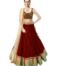 Maroon silk embroidered unstitched lehenga choli