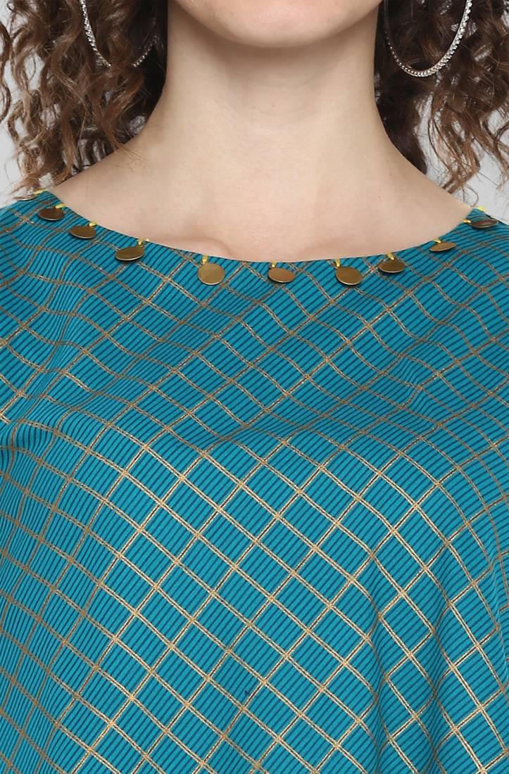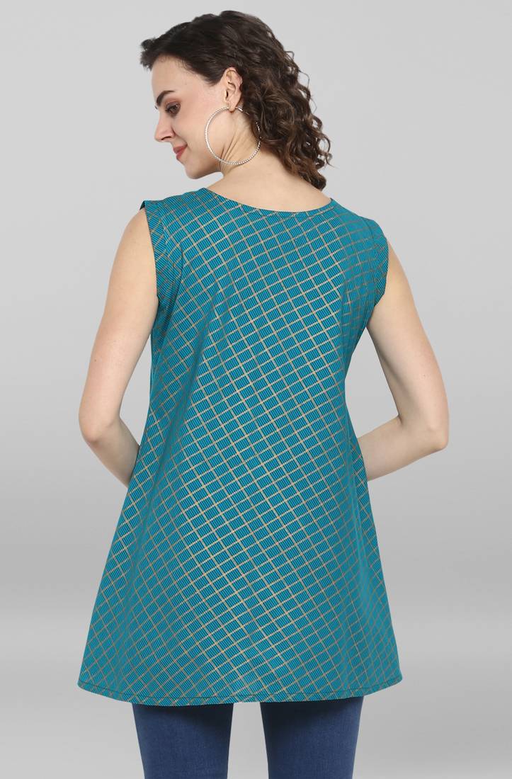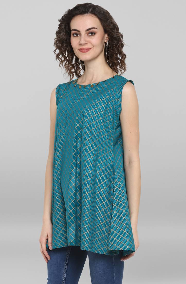 | Product Description | Premium Collection By Janasya.Turn Up Your Style With This Charming Sleeveless A Line Top Designed By Janasya. This Top Features Round Neck With Metal Embellishment Details On It And Has Checkered Foil Print On It Making It Stylish And Comfortable At A Same Time. Match This Turquoise Blue Piece With A Pair Of Slim Jeans And Easy Loafers For A Fashionable Yet Casual Day Out. |